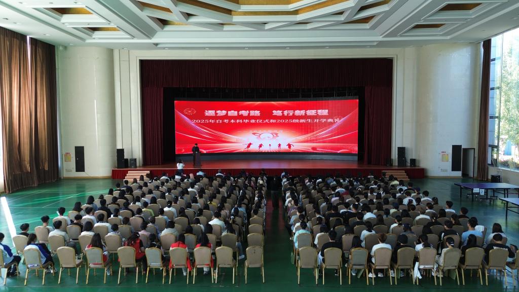 9月25日下午,泰安教学部“逐梦自考路 笃行新征程”2025年自考本科毕业仪式和2025级新生开学圆满结束。学院继续教育学院院长覃翠英、泰安教学部党委书记白珣,自考助学全体老师、自考本科毕业生代表和2025级自考新生参加了典礼。