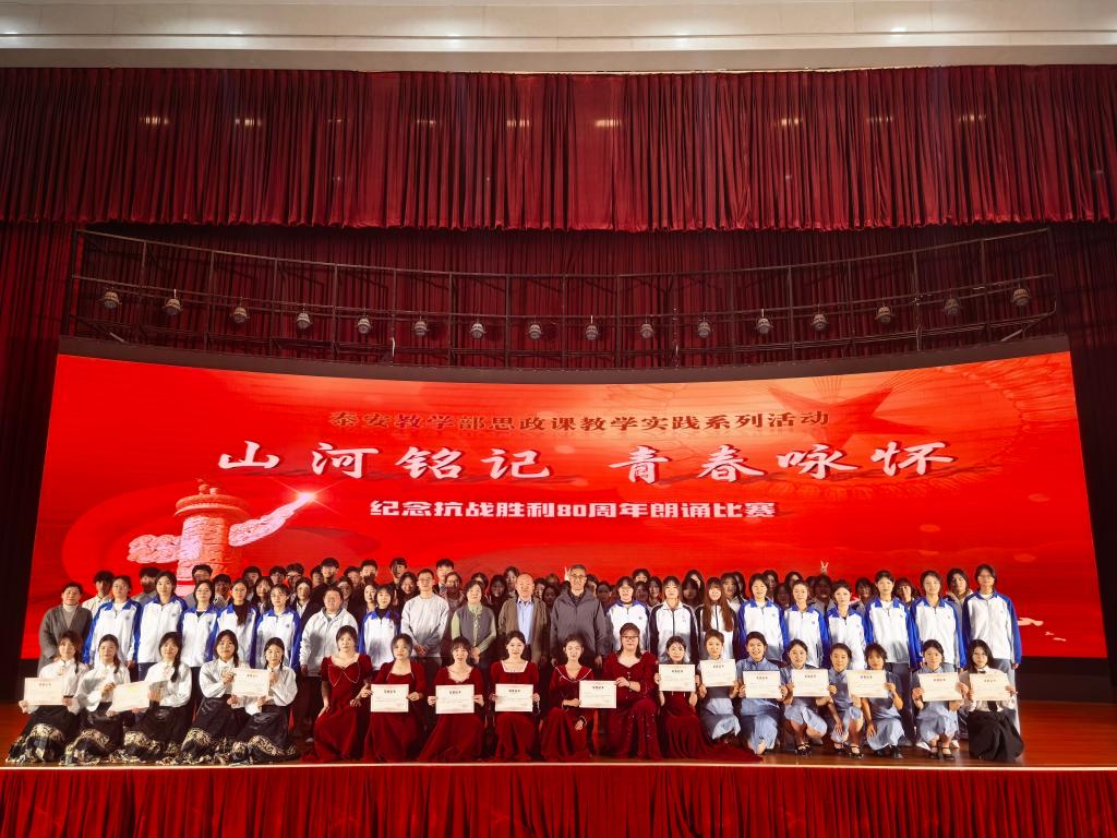 11月20日下午,泰安教学部在泰山会堂举行“山河铭记 青春咏怀——纪念抗战胜利 80 周年”朗诵比赛。通过朗诵的艺术形式,引导青年学生铭记历史,传承抗战精神,将历史记忆与当代青年的责任担当结合起来,以先辈的青春热血映照自身的理想追求,厚植赤诚的爱国主义情怀,树立为实现中华民族伟大复兴中国梦而奋斗的青春志向。